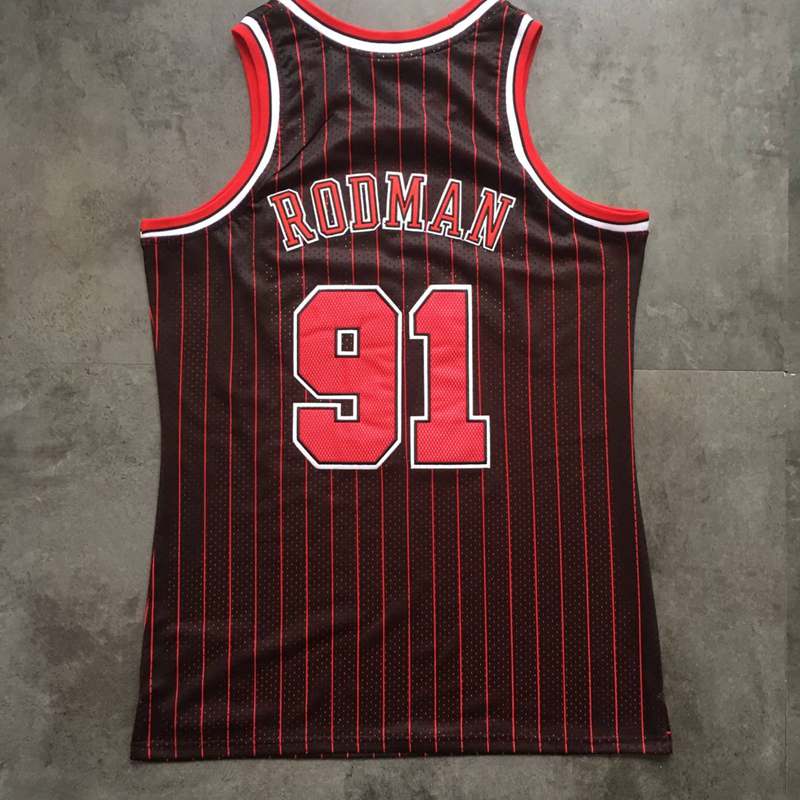 Mitchell&Ness Retro Jersey Bulls 91# Rodman Black with Red Stripe Embroidery