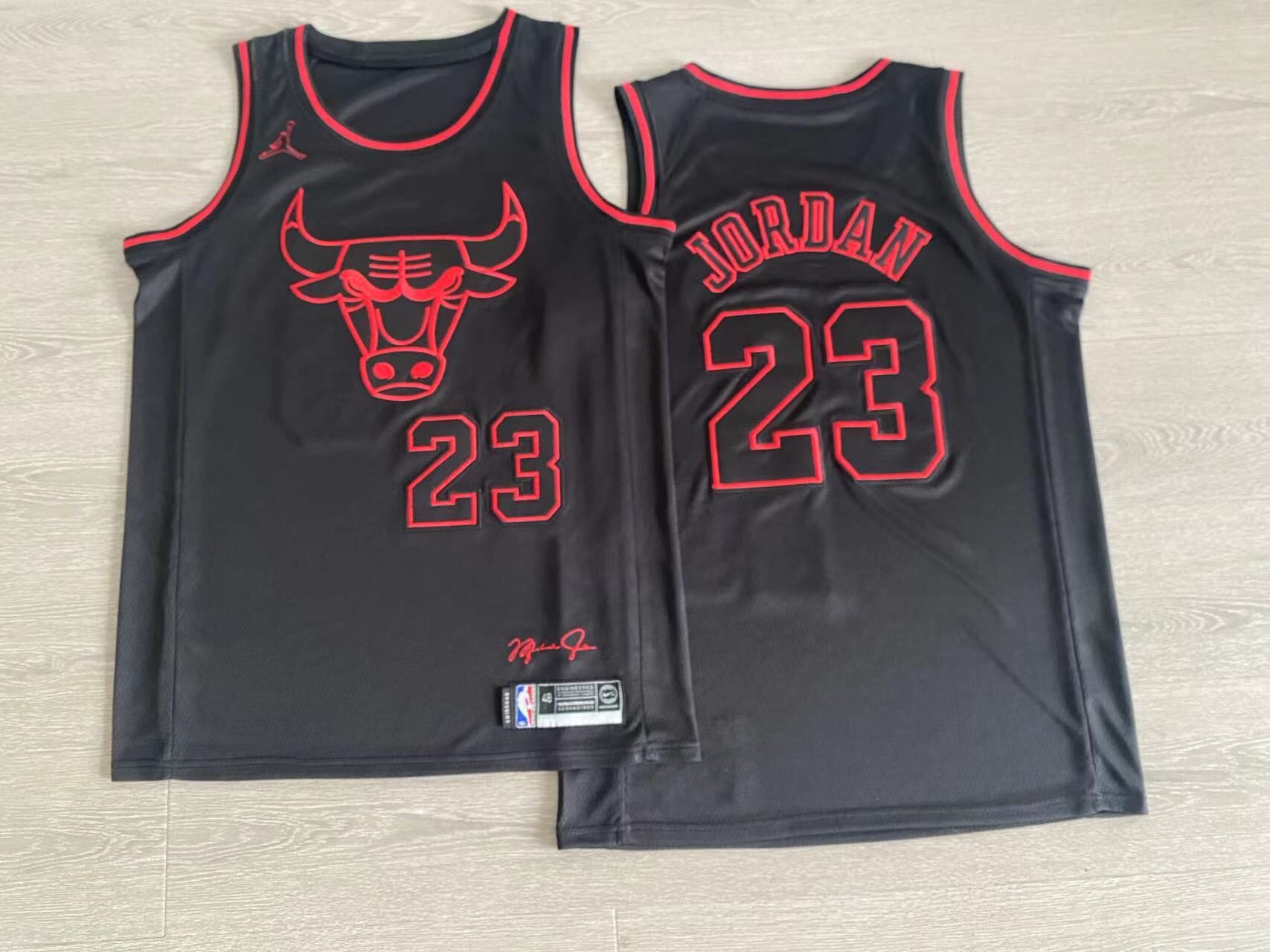 Be the first to review “Nike Bulls No. 23 Jordan signature black jersey with red edges”